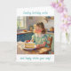 A birthday card for her with a sweet illustration of a piece of chocolate cake, pretty colorful flowers sitting on a rustic wood table in a cute cottage kitchen. This has a sweet sentimental message inside.
