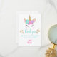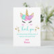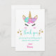 Unicorn First Birthday Party thank you card. Cute design in faux glitter gold with floral accent. Purple, teal, pink gold and white. Perfect for a magical 1st bday celebration. Make it your own by adding your text. To access advanced editing tools, please go to "Personalise", scroll down and press the "click to customise further" link.