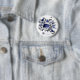 This fun basketball button features an "explosion" of varied size blue, grey and white basketballs and grey, blue and white star shapes - a pattern of tiny white polka dots covers the blue star - customise with the athlete's name & jersey number - by katz_d_zynes