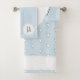 Girl's Blue Heart Doodle Pattern Monogram Simple Bath Towel Set