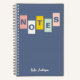 A blue notebook for girls with a colourful text that reads "NOTES" and a custom monogrammed full name.