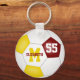 This team colours soccer keychain for girls or boys features a traditional style soccer ball with maroon, gold and white panels - customise the player's name, monogram and jersey number - by katz_d_zynes