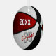 This cool basketball team colours ornament for girls or boys features a realistic looking basketball that has alternating red, white and black recolored panels - personalise the front and back of ornament with year and player's name in an "autograph" style font overlying the athlete's jersey number - by katz_d_zynes