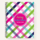 Our Girl's Bright Preppy Plaid Spiral Notebook is perfect for back to school! This design features a fun and bright colour scheme of hot pink, navy blue, aqua, and green. Customise the fonts and colours and text on the front, and the back cover colour for a truly unique custom notebook for back to school.