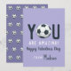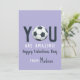 This cute and modern kid's classroom valentines card features a purple sports design, with a cute soccer ball (football) making the 'YOU", and a matching pattern on the back. The card can be personalised with your girls name. The perfect sports-themed gift for your child’s school friends this Valentine’s Day!