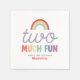 Celebrate turning two with these adorable “Two Much Fun” birthday napkins! Featuring a modern retro rainbow, colorful font and space to add your child’s name on the front. Perfect for a 2nd birthday party.
