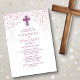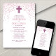 A modern, contemporary confirmation design for their big day! The pink and purple confetti and the simple typography give this design a classic, fun vibe.