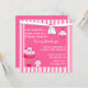 Sweet girl's birthday party invitation done with a pink and white striped background, and a pink text area layered, on top of the background. Graphics of a white ribbon, at the top, and whimsical pretty cupcakes decorate the invitation. White fun text is fully customisable for your party needs. Great invitation to any little girl's birthday party.