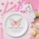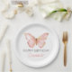 Girls Cute Blush Pink Butterfly 1st Birthday Party Paper Plate