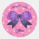 Girls Cute Bow Merry Christmas custom name Classic Round Sticker