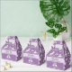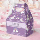 This cute and magical purple girls birthday party favour box features a unicorn cartoon pattern, with a rainbow, planet, crown, stars and heart, and can be personalised with your child's names and a short thank you message. The perfect unicorn themed personalised favour box for your girls princess birthday party!