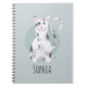 This cute and modern kids school notebook design features a cute black and white cat cartoon on a blue background and has a place for you to add your girls name in lovely typography. The perfect feline stationery design for any cat-lover!