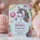 Girls Cute Pastel Unicorn Kids 4th Birthday Invitation