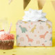 This cute and whimsical girls birthday wrapping paper design features dinosaur cartoons, with a t-rex, stegosaurus, rainbows, and jurassic jungle plants and flowers. The perfect gift wrap for any Dino lover.