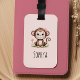 Girls Cute Pink Monkey Kids Luggage Tag
