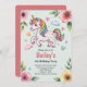 Girls Cute Pink Unicorn Kids 4th Birthday Party Invitation