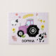 Girls Cute Purple Farm Tractor and Name Kids Jigsaw Puzzle