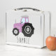 This cute girls lunch box design features a purple tractor cartoon and has a place for you to add your kids name in whimsical typography, and last name on the back. Perfect for your child or toddler's back-to-school supplies. Check out the rest of our collection for other cute farmer kids items!