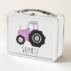 Girls Cute Purple Farm Tractor Kids Metal Lunch Box