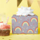 Gorgeous purple wrapping paper with a retro pastel rainbow pattern with magical stars. Perfect for a girls birthday.