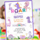 Girls Cute Roar Dinosaur Birthday Party Invitation