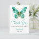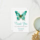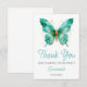 Girls Cute Teal Green Butterfly 1st Birthday Party Thank You Card