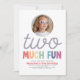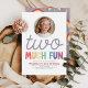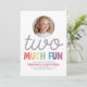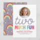 Girls Cute Two Much Fun Rainbow Photo 2nd Birthday Invitation