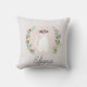 This beautiful and chic kids or baby's pillow design features a cute white cat and watercolor flower wreath, with a customisable background colour and places for your to add your girl's name in an elegant font. Perfect for any kid's room or baby's nursery.