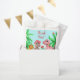 Adorable dinosaur-themed thank you favour bag featuring sweet pastel pink, orange, and brown dinos surrounded by lush tropical greenery and flowers. Perfect for holding treats, small toys, or goodies at a girl’s dinosaur birthday party. A fun and memorable way to thank guests while matching your party theme.