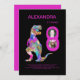 Celebrate your dinosaur lover’s big 8th birthday with this vibrant, roar-some dinosaur 8th birthday party pink and black two photo collage invitation. Perfect for the girl that loves dinosaurs. Featuring a colourful, eye-catching T-Rex illustration in bright, bold colours, this invitation is the perfect way to set the stage for an exciting celebration. Designed with original by artist Catherine Sweetman. The modern typography in hot pink hues on a striking black background makes it easy to customise with 2 cherished photos of the birthday girl, all the party details, ensuring your guests are ready for a dino-mite adventure! This fun and unique invitation will have everyone counting down the days until the big day!