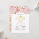 Elegant Floral First Holy Communion Invitation with gold confetti and pink pretty floral.
