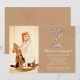 Original design by Pip Pip Hooray. Printed image of originally hand drawn flowers by Pip. Unique, contemporary designer kids birthday invite on trendy kraft cardboard brown paper background. Add your own gorgeous photo of your daughter to this personalised invite. The invites will be professionally printed and sent to you door. Envelopes come included in the cost.