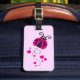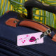 Cute id kids luggage label featuring a flying ladybug / ladybird with hearts. Personalise with your name and address details on the reverse. Uniquely designed by Sarah Trett.