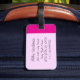 This was purchased as part of a 40th Birthday present for my nephew who is going to Vegas. It is made of high quality, very study and we decided only to put his name on the back of the tag, but you can add a full address if you so wish.