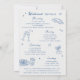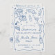 This two-sided bachelorette invitation features a soft white background paired with soft blue accents and playful hand-drawn illustrations, including pajama sets, sleep masks, lipstick, champagne, martinis, pizza, popcorn, bows, cherries, and beauty essentials. The whimsical doodle-style artwork combined with casual handwritten typography creates a fresh, airy look that feels coastal, clean, and beautifully modern.