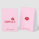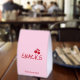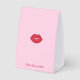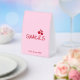 This table tent features a playful “Girls Gone Mild” snacks design, created to coordinate perfectly with a chic bachelorette party setup. Set against a soft blush pink background, the sign highlights bold cherry red typography for a fun, eye-catching look that’s easy to read at table level.