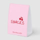 The front of the sign features the word “Snacks” accented with juicy red cherries, adding a sweet and cheeky touch that ties into the overall theme. On the back, a subtle lipstick kiss graphic pairs with the phrase “Girls Gone Mild”, creating a cohesive look from every angle.