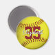 This softball themed magnet features the image of a realistic, grungy looking yellow softball upon which you can easily customize the athlete's name & jersey number - by katz_d_zynes