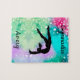 Girls Gymnastics Watercolor with Floating Hearts Jigsaw Puzzle