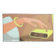 Girls hand pushing on alarm clock snooze button pillowcase