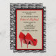 Get ready to party with this wild invitation. The zebra background features a red and black border and lady's red, high heel shoes.