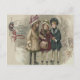 Time to celebrate the holidays. This vintage Christmas print depicts children ice skating on a frozen pond while it's snowing.