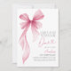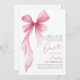 Girl's just wanna be one! Pink Bow 1st Birthday Invitation - A pretty pink bow coquette themed first birthday invitation with modern watercolour pink bow.