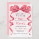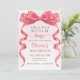 Celebrate a special birthday with an invitation that feels truly magical. This design features a stunning watercolor illustration of a large pink bow with flowing ribbons, painted with soft shading and delicate details that exude elegance and charm. Set against a light pink background, subtle sparkle effects add a dreamy, artistic touch that instantly captures attention.