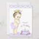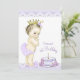 Lavender and gold first birthday party invitation with adorable vintage princess wearing lavender ruffle pants and gold crown on a pretty lavender and lace and birthday cake background. This cute lavender birthday party invitation is easily customised for your event by adding your event details, font style, font size & colour, and wording.