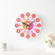 Colourful little girls graphic wall clock colour coded to help assist your child to read a clock. This colourful teaching aid includes minutes and hours and past and to making child's play of telling the time. Clock colour coded in pink, red, orange and white featuring a little white butterfly and can be customised with your name of choice. Currently reads Beatriz. Designed exclusively by Sarah Trett. A great addition to a colourful little girl's bedroom who is just learning to read a clock face. Would make a great well done at school present or special birthday / Christmas gift.