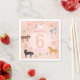 This cute girls’ birthday napkin design features a pastel pink background with unicorns, horses, rainbows, and stars in a soft, girly, magical style. The whimsical design adds a sweet, coordinated touch to any unicorn or horse-themed party. Check out our collection for matching party supplies.
