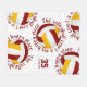This cool volleyball themed fleece blanket features 5 randomly arranged maroon, gold and white volleyballs with the text, "The volleyball court is my happy place" in gold encircling each volleyball in a fun typographic font, all on a white background - her name and jersey number are customisable - by katz_d_zynes
