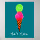 Girl's bedroom poster with customisable name art with a pop art ice cream design with pink and green ice cream in a cone original stencil art design by Zoe Tuong. The background is fully customisable to suit your decor. perfect for a kids room or to brighten up the house with a Summer vibe.