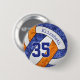 This team colours volleyball button features the realistic image of a stylised blue, orange & white volleyball that has an artsy floral kaleidoscopic pattern blended with its blue & orange panels - personalise with the athlete's name and jersey number - by katz_d_zynes